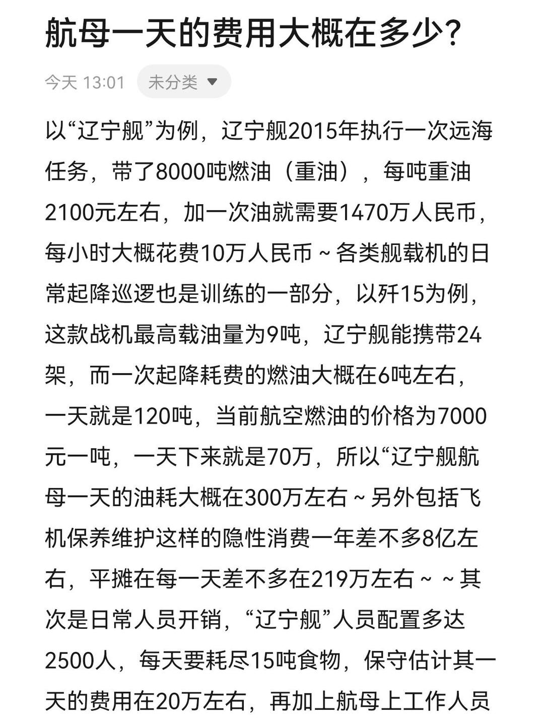 航母造价概述